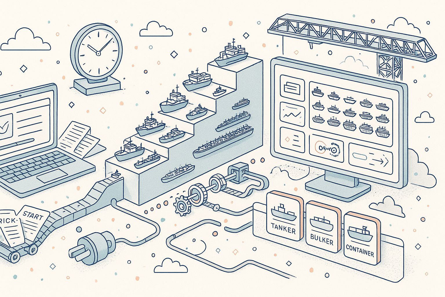 Navatom was designed from day one to eliminate this problem. As a cloud-native platform, there is nothing to install — not on shore, not on board. Adding a vessel to the platform is a configuration task, not an IT project. Register the vessel, assign modules, import data if available, and the vessel is immediately operational. The entire process takes minutes, and it is identical whether the vessel is your second or your two-hundredth.