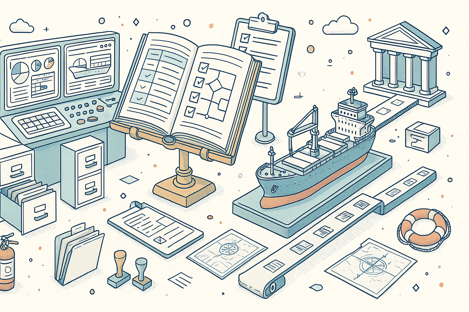 The documentation requirements under Section 11 are extensive. All SMS documents must be controlled, meaning that obsolete versions are removed from use and that amendments are reviewed and approved by authorized personnel before distribution. This includes policy manuals, operational procedures, checklists, emergency contact lists, and records of drills, maintenance, and non-conformity resolution. The sheer volume of documentation and the need for controlled distribution across multiple vessels and shore offices is one of the most resource-intensive aspects of ISM compliance.
